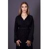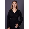 Sa silhouette fluide, associée à des manches larges, confère une allure gracieuse et majestueuse. La ceinture coordonnée vient marquer la taille avec subtilité, apportant harmonie et féminité à l’ensemble.